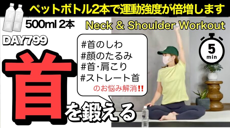 頭を支える筋肉を鍛えるとシワ•たるみ•肩こり解消!!|毎日投稿799日目|5 Minute Neck & Shoulder Workout with water bottles